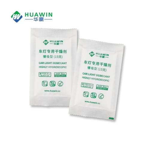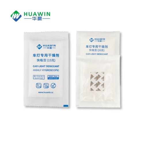 The car lamp desiccant can withstand high temperature working environment. It uses 3 layers of anti-leakage packaging material. The bag will not break after being exposed to 180° high temperature for 1 hour. It has the properties of waterproof, breathable, strong, tear-resistant, etc., firmly locks water and is impermeable.