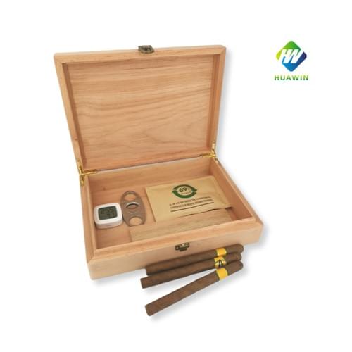 Step 3: Place the hygrometer and cigar humidification pack together in the cedar wood cigar box and seal it.