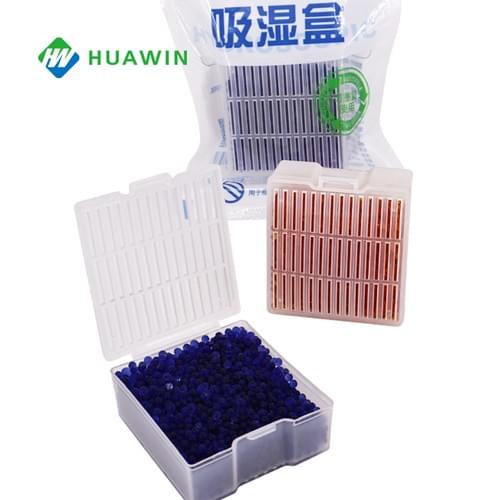 After the silica gel desiccant in the moisture-absorbing box becomes moisture-saturated, it can regain its original color and be reused by heating in a microwave or drying.