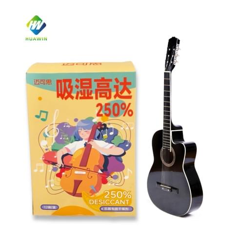 The musical instrument desiccant is made of magnesium chloride, which has stable chemical properties, balanced absorption performance, high moisture absorption rate, up to 250%, and becomes solid after moisture absorption and no liquid water seeps out of the surface.