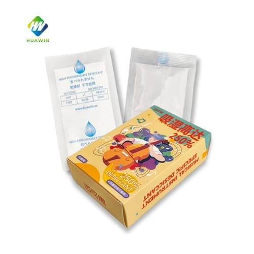 The special desiccant for musical instruments can withstand high-temperature working environments. It uses high-temperature-resistant anti-permeability paper as the packaging material. It can withstand 180° high temperature for 1 hour without breaking the bag. It is waterproof, breathable, strong, tear-resistant and other properties. It can firmly lock in water and not penetration.